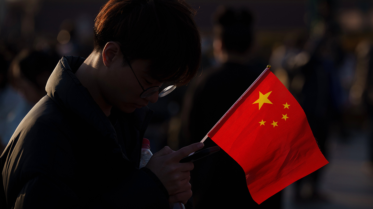 ▲ 중국 베이징에서 한 남성이 중국 국기를 들고 걸어가는 모습