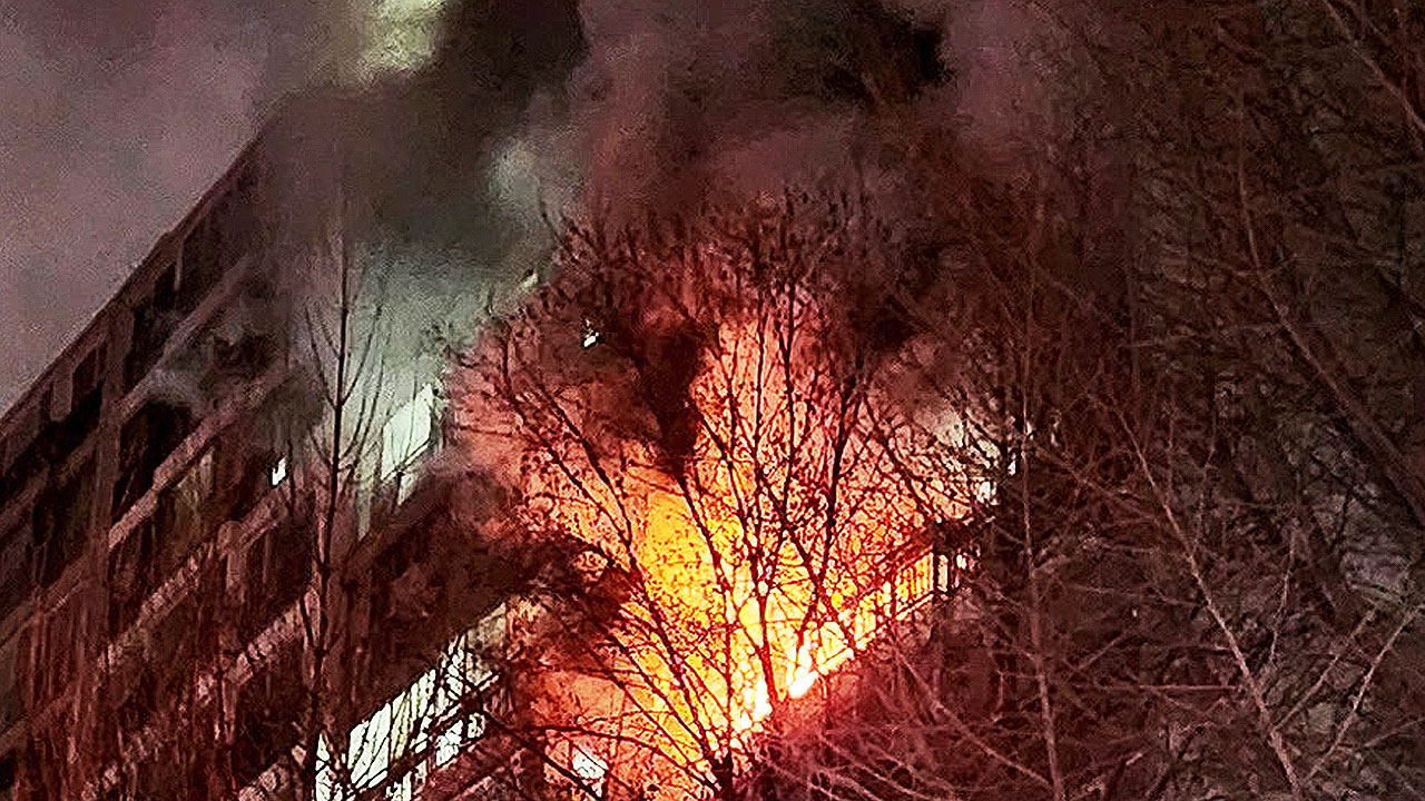 시뻘건 불길과 함께 아파트 창 밖으로 연기가 쉴 새 없이 뿜어져 나옵니다.