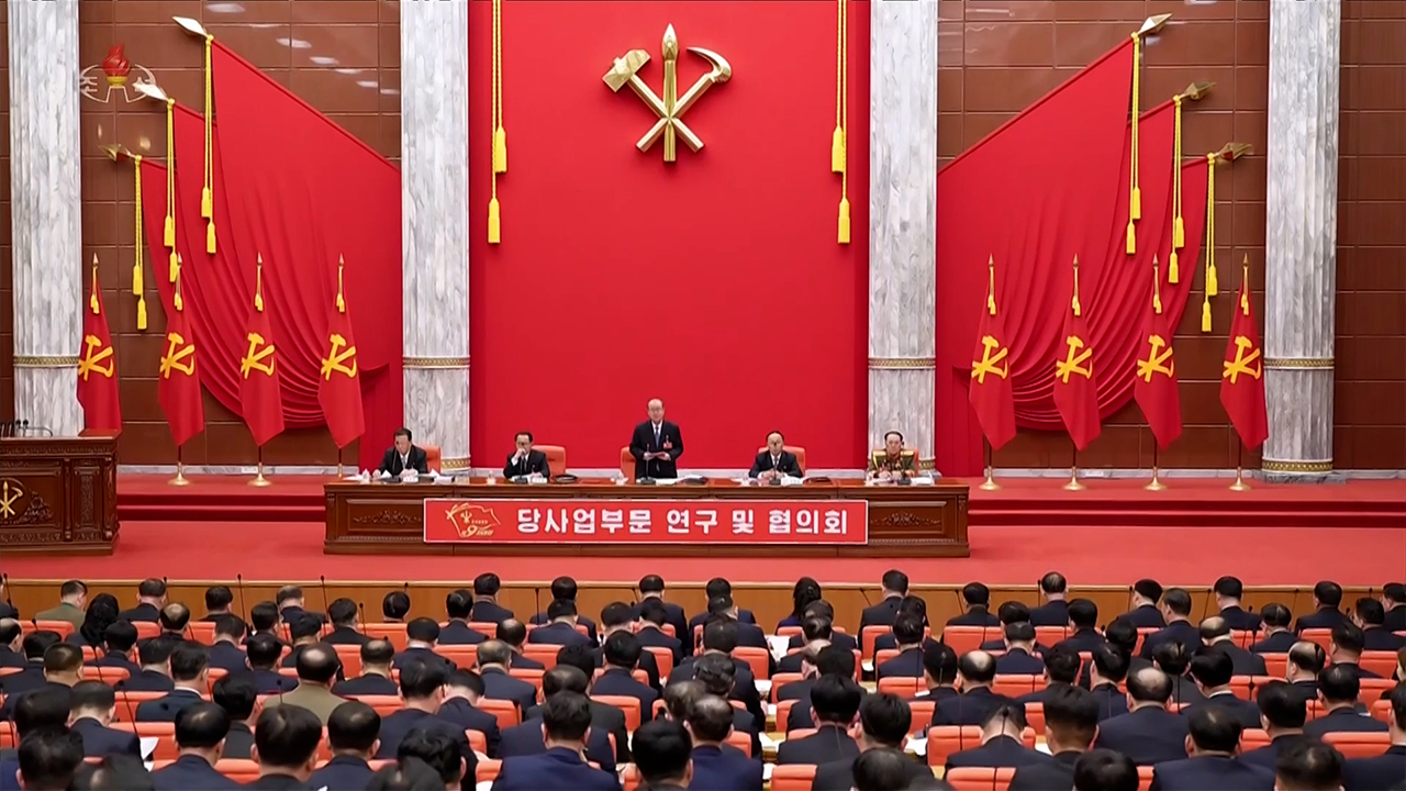 ▲ 북한은 지난 23일 당대회 5일 회의를 열고 당중앙위원회 제9기 전망목표와 계획을 연구·토의하기 위한 공업·농업·경공업·문화·건설·군사·군수·법무·대외·당사업 부문별 연구 및 협의회를 진행했다고 조선중앙TV가 24일 보도했다.