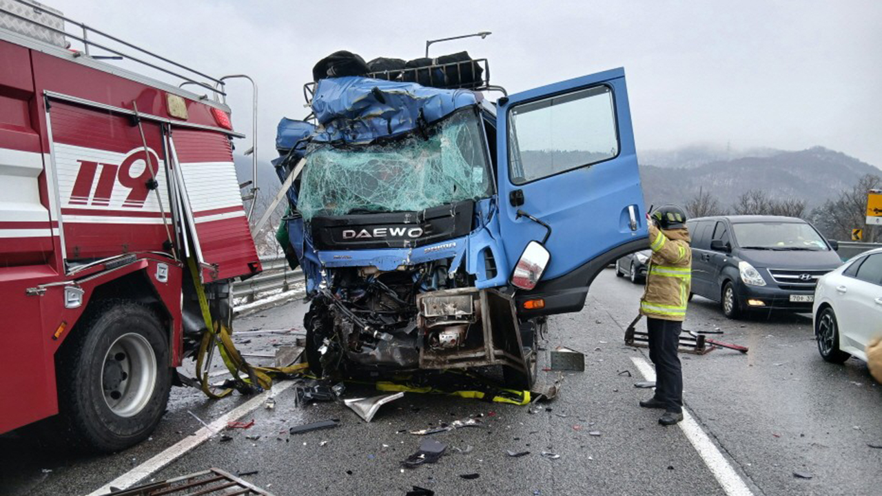 이 사고로 화물차 운전자(60대)와 승용차 운전자(40대)가 다쳐 병원으로 이송됐습니다.