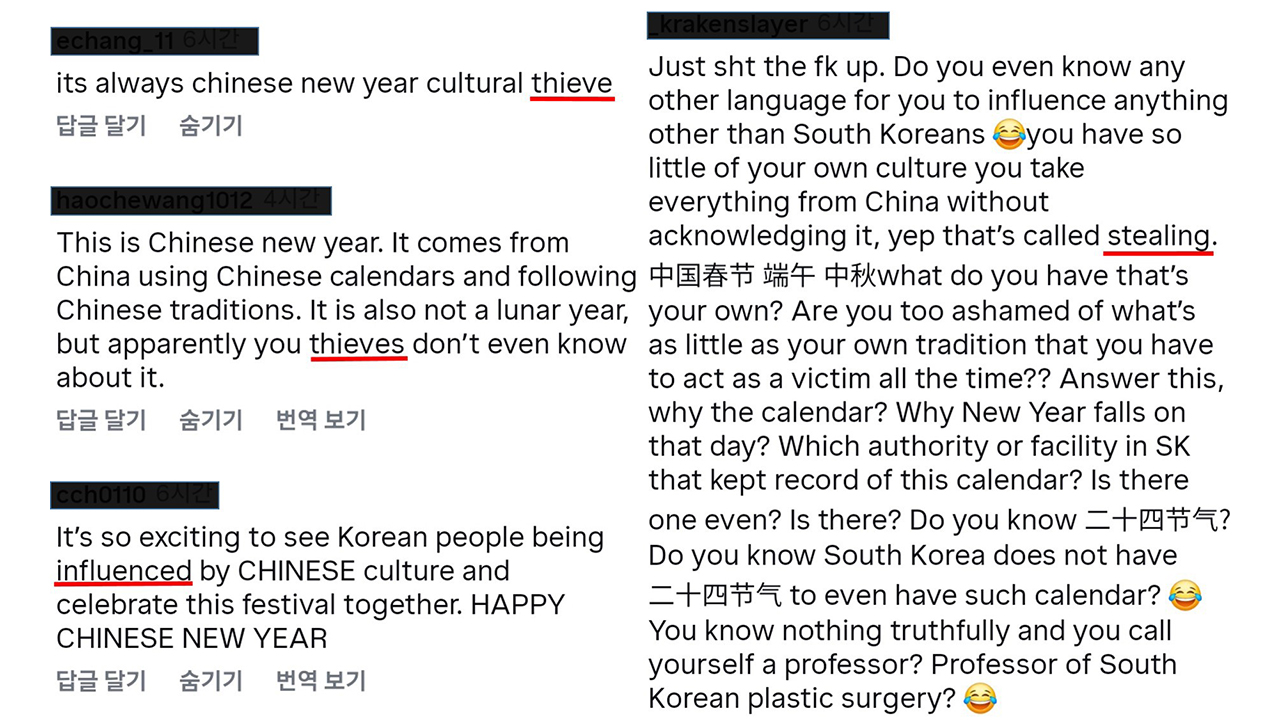 중국 누리꾼으로 추정되는 일부 사회관계망서비스(SNS) 이용자들이 "한국은 문화 도둑국", "중국설을 훔쳐 설날을 만들었다"고 주장한 것으로 알려졌습니다.