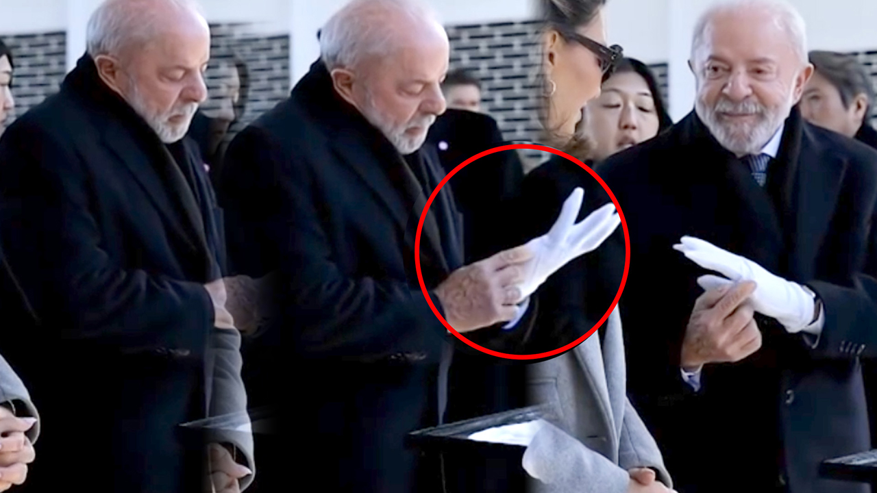 영상에는 방한 일정 도중 국립현충원을 방문한 룰라 대통령이 새끼손가락이 없는 하얀색 장갑에 놀라며 옆에 있던 아내에게 이걸 보여주는 장면이 담겨 있습니다.