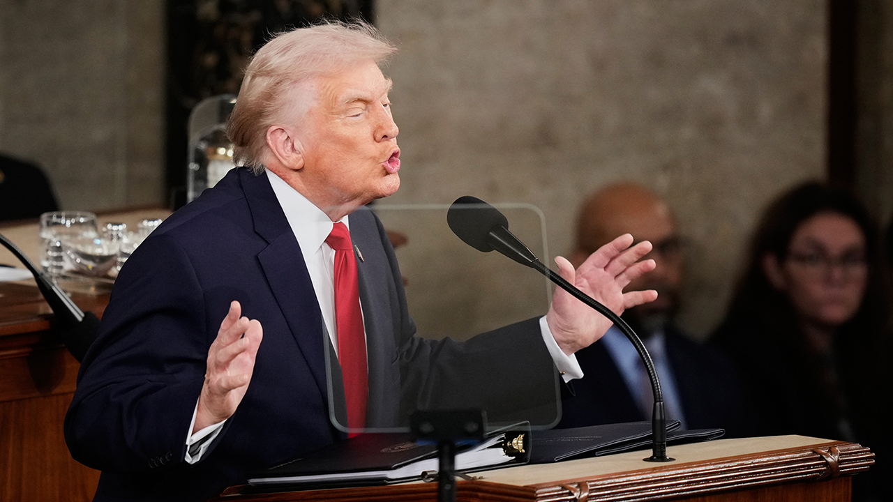 ▲ 도널드 트럼프 미국 대통령이 24일(현지시간) 워싱턴 DC 미국 국회의사당 하원 회의장에서 2기 첫 국정연설을 하고 있다.