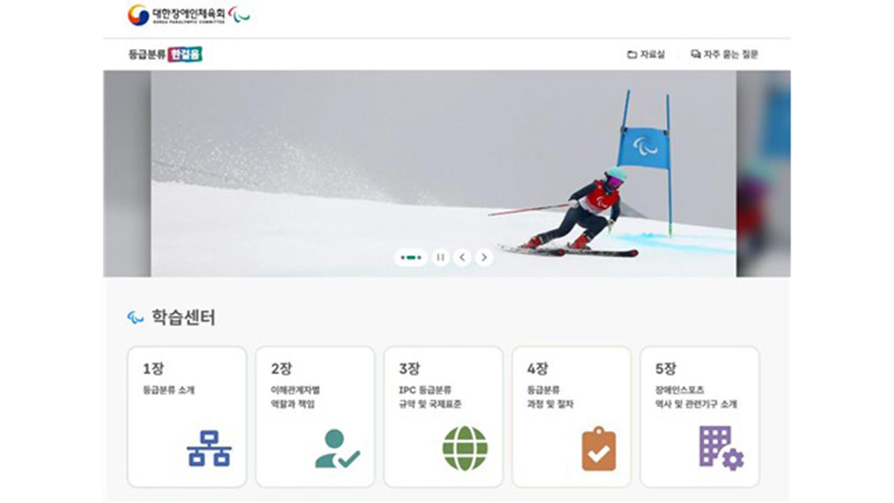 이에 장애인체육회는 국제등급분류사와 분야별 전문가의 자문을 구해 기초 교육자료를 개발하고, 누구나 자유롭게 학습할 수 있도록 온라인 교육포털을 개설했습니다.