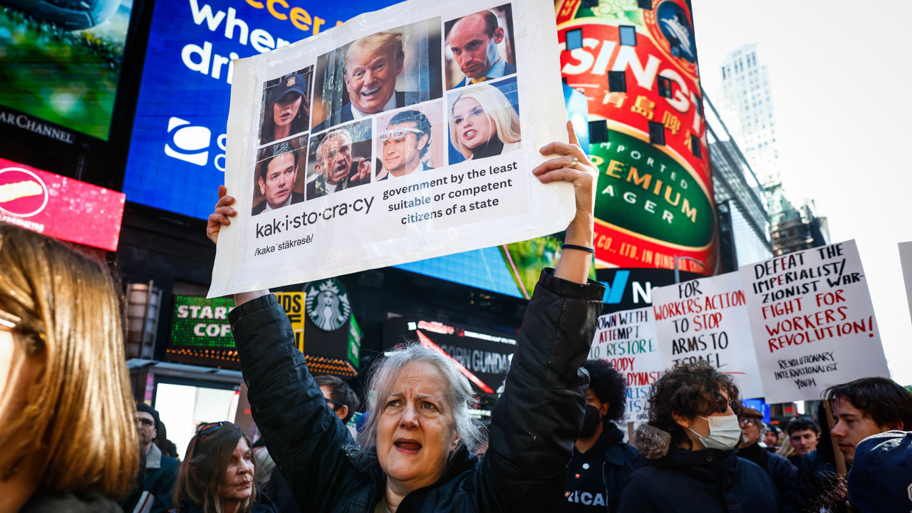 ▲ 28일(현지시간) 미국 뉴욕에서 열린 이란 공습 반대 시위