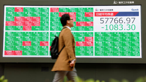 ▲ 미국과 이스라엘의 이란 공습 여파로 아시아 증시가 급락한 가운데 2일 도쿄에서 남성이 닛케이지수 현황판 앞을 지나가고 있다.