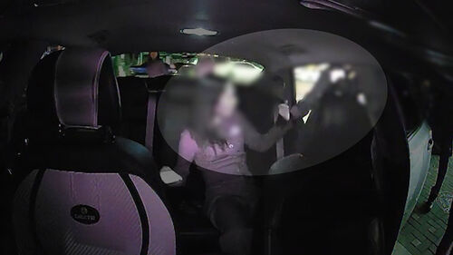 택시에서 하차시키려 하자 여성이 강하게 저항합니다.