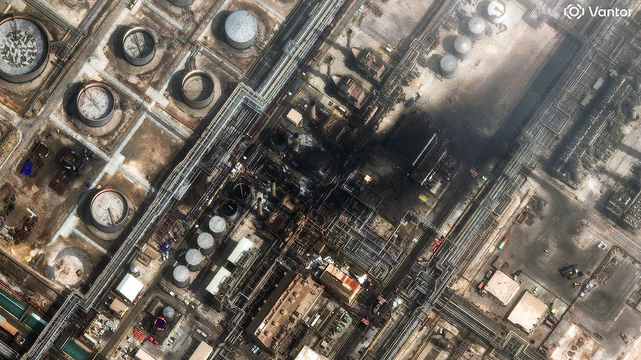▲ 밴터(Vantor)가 제공한 위성사진에 지난 2일 사우디 라스타누라 정유시설이 드론 공습 여파로 파손된 모습