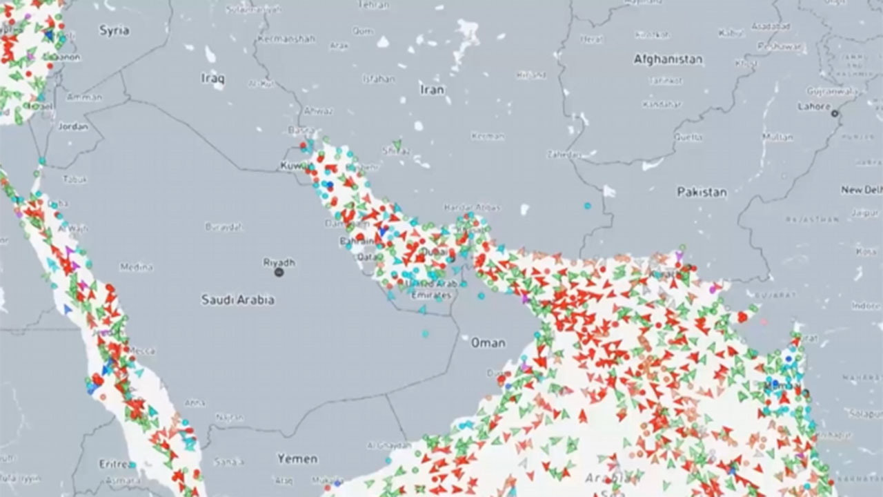 선박 추적 사이트로 본 호르무즈 해협 모습입니다.
