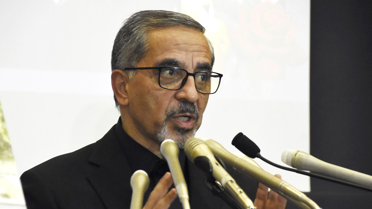 ▲ 페이만 사다트 주일 이란 대사가 3일 도쿄에서 기자회견을 열고 미국과 이스라엘의 공격에 대한 입장을 말하고 있다.
