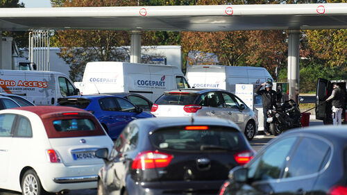 프랑스의 소도시 오아즈몽에 있는 대형 마트 앵테르마르셰에는 전날 저녁부터 주유소 앞에 대기 줄이 생겨 급한 고객들은 가격이 더 비싼 독립 주유소로 발길을 돌려야 했습니다.