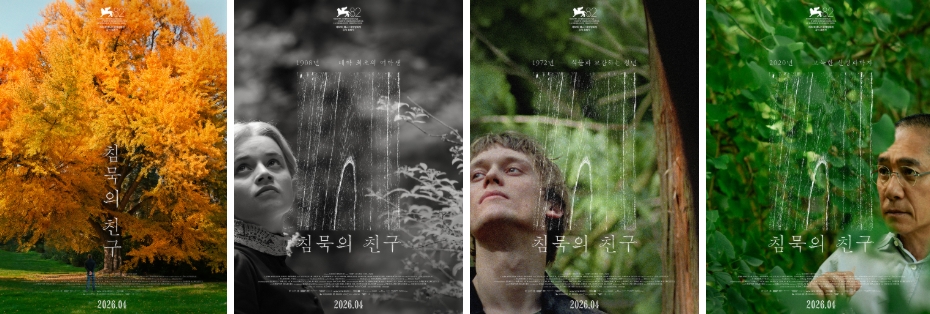 4월 개봉 소식과 함께 1차로 공개된 '침묵의 친구' 캐릭터 포스터는 1832년부터 인간을 바라보며 뿌리내린 장엄한 '은행나무'와 1908년 대학 최초의 여학생 '그레테', 1972년 식물과 교감하는 청년 '하네스', 2020년 고독한 신경과학자 '토니'까지 한 세기가 넘는 시간 동안 은행나무와 고요히 연결되는 세 시대의 세 인물을 담고 있어 특별함을 더한다.