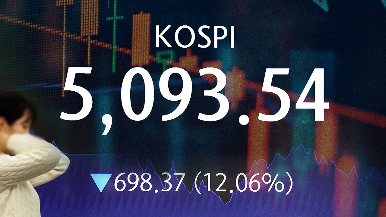 코스피는 어제보다 12%, 698포인트 폭락한 5,093으로 장을 마쳤습니다.
