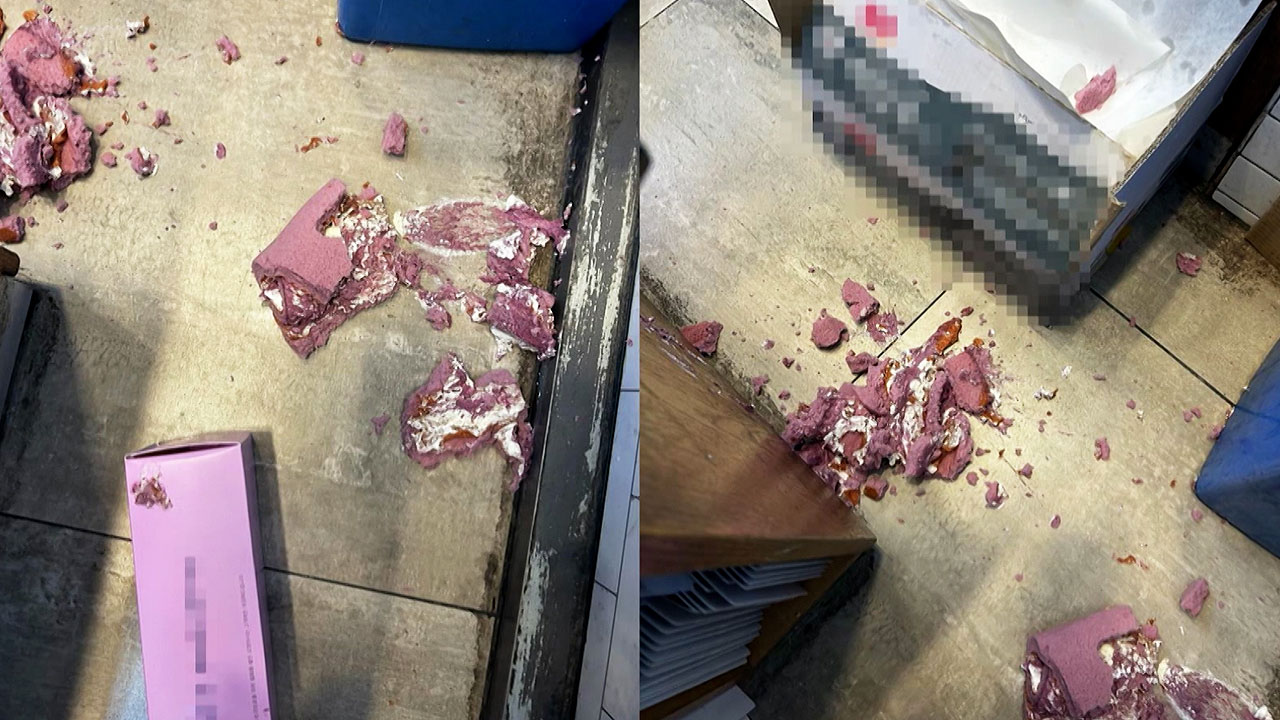 함께 공개된 사진을 보면 바닥에 빵이 산산조각 나 흩어져 있는데요.