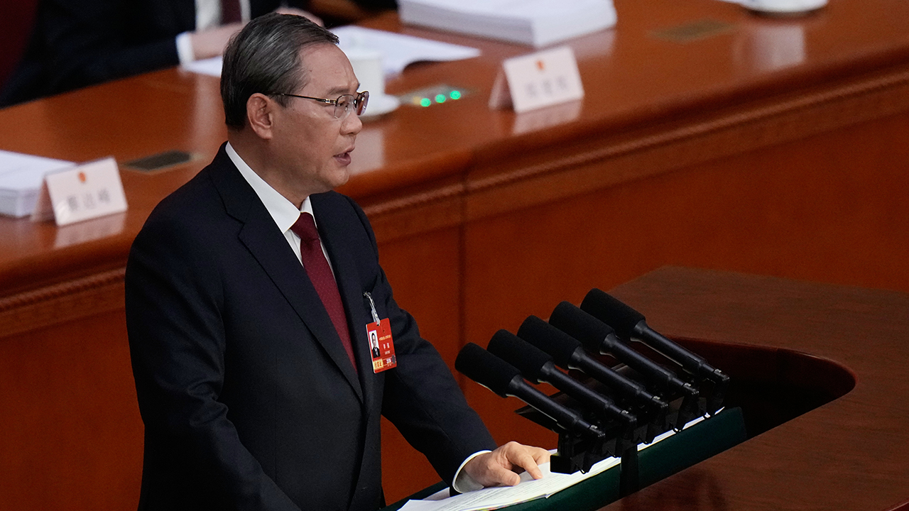 ▲ 리창 중국 국무원 총리가 5일 베이징 인민대회당에서 열린 제14기 전국인민대표대회(전인대)에서 연설하고 있다.