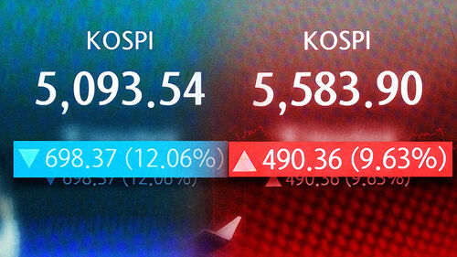 어제(4일) 역대 가장 큰 폭으로 하락했던 코스피가, 오늘은 폭등하며 마감했습니다. 하루 10% 안팎씩 떨어지고 오르는 극심한 변동성이 나타나면서, 투자에 신중해야 한다는 경고가 나오고 있습니다.