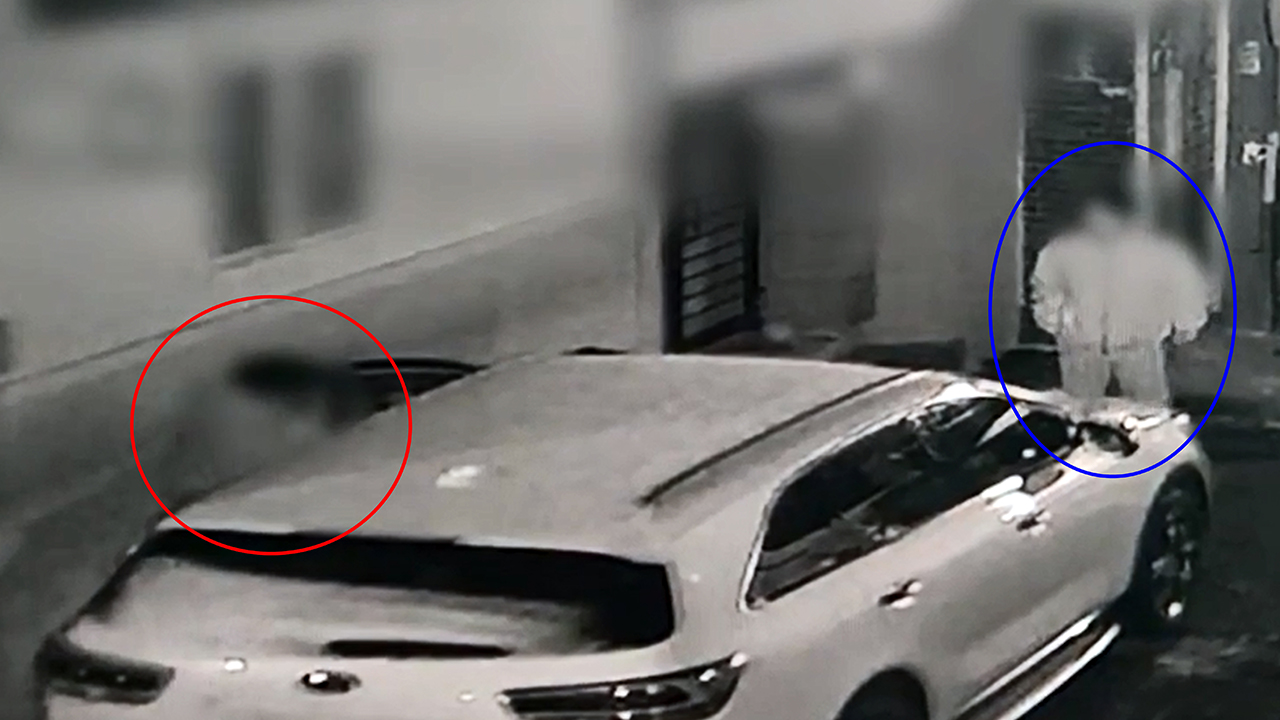 ▲ 범행 중 피해자(파란색 원)와 마주친 차털이범(빨간색 원)