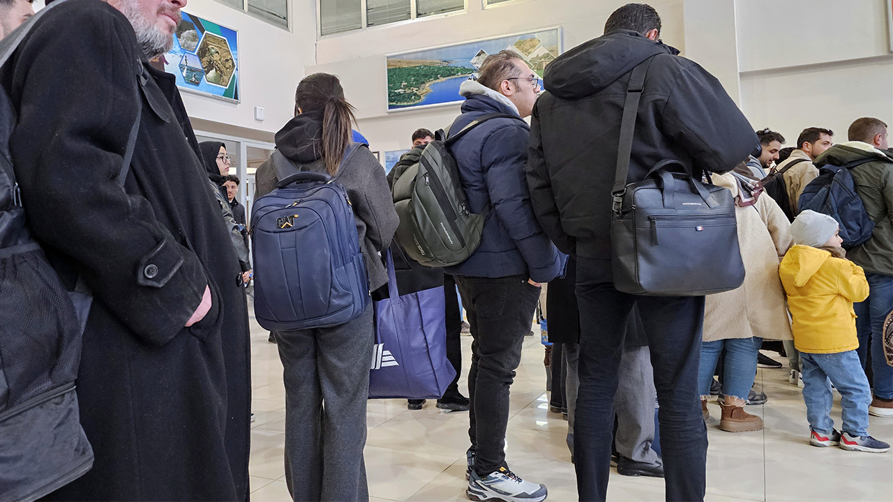 ▲ 5일(현지시간) 튀르키예 동부 반(Van) 공항에서 이스탄불로 가는 비행기에 탑승하는 이란인 대학생 메르사나(가명·가운데)