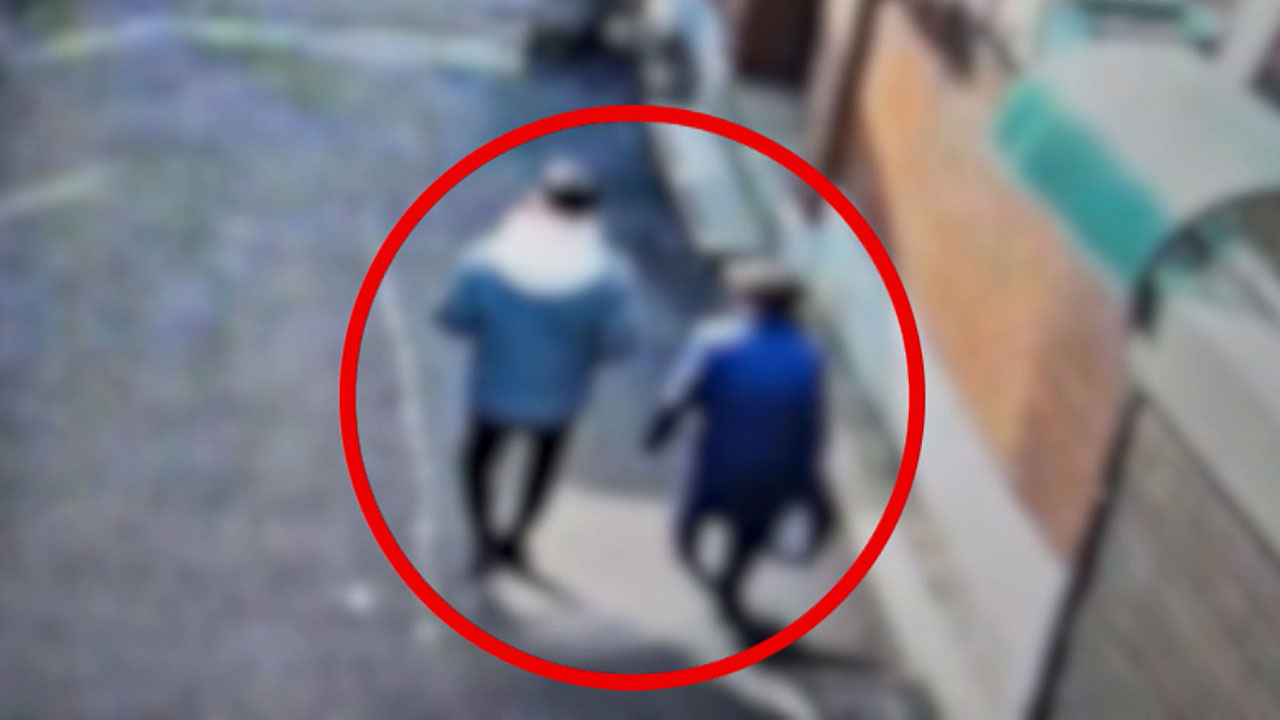 한 남성이 노인과 나란히 걸어오더니 집으로 들어갑니다.