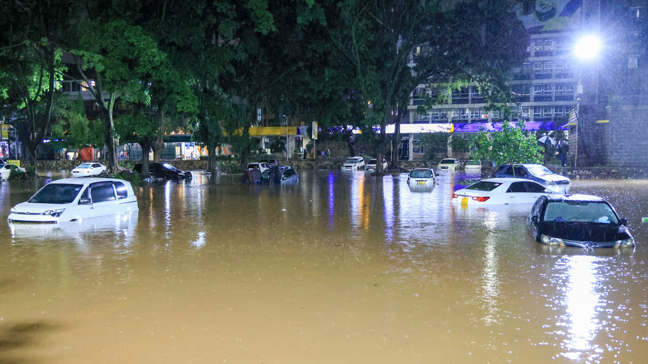 ▲ 현지시간 6일 케냐 나이로비에서 폭우로 도로가 침수된 후 물에 잠긴 차량들이 보인다.