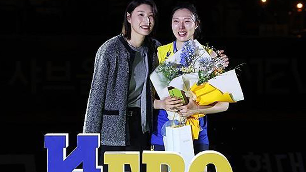 양효진은 정규리그 마지막 홈경기가 열린 그제(8일) 수원체육관에서 페퍼저축은행과 경기가 끝난 후 은퇴식과 함께 등번호 14번에 대한 영구결번식을 가졌습니다.