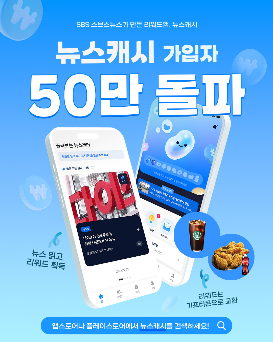 SBS 자회사 '스튜디오 161'의 리워드 기반 뉴스 앱 '뉴스캐시'가 가입자 50만 명을 넘어섰다.