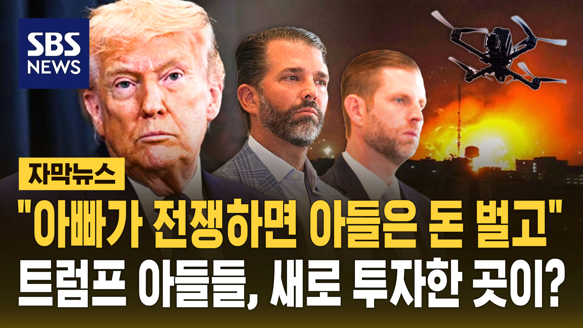 이란 전쟁에서 드론의 파괴력이 주목을 받는 가운데 도널드 트럼프 미국 대통령의 아들들이 방위 산업 분야 드론 기업에 투자해 이해충돌 논란이 일고 있습니다.