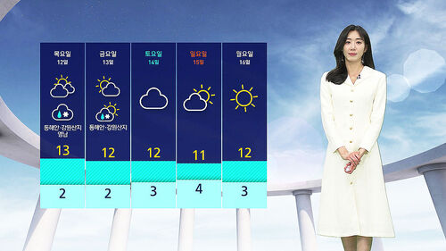 목요일부터는 서울의 낮 기온이 10도를 웃돌며 포근해지겠고 동해안을 중심으로는 눈비 예보가 나와 있습니다.