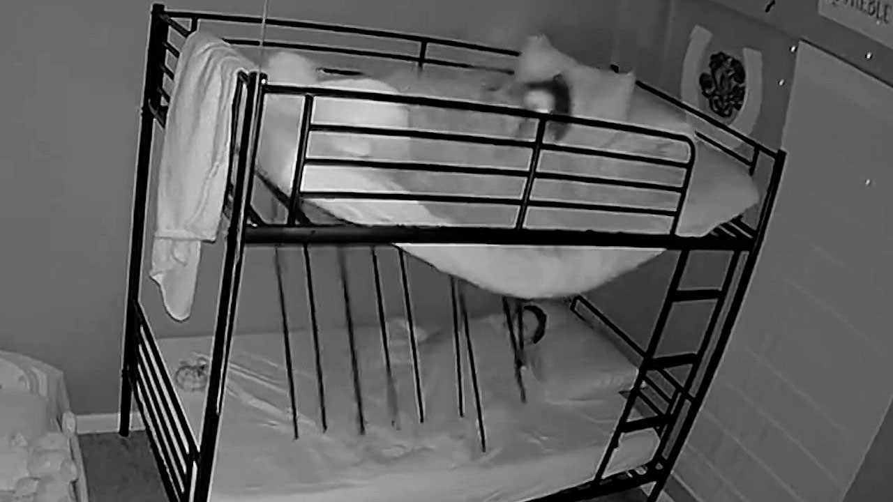 위에 있던 누나는 그대로 튕겨나가고 아래층에서 자던 남동생은 무너진 침대에 깔려 아찔한 상황에 놓이는데요.