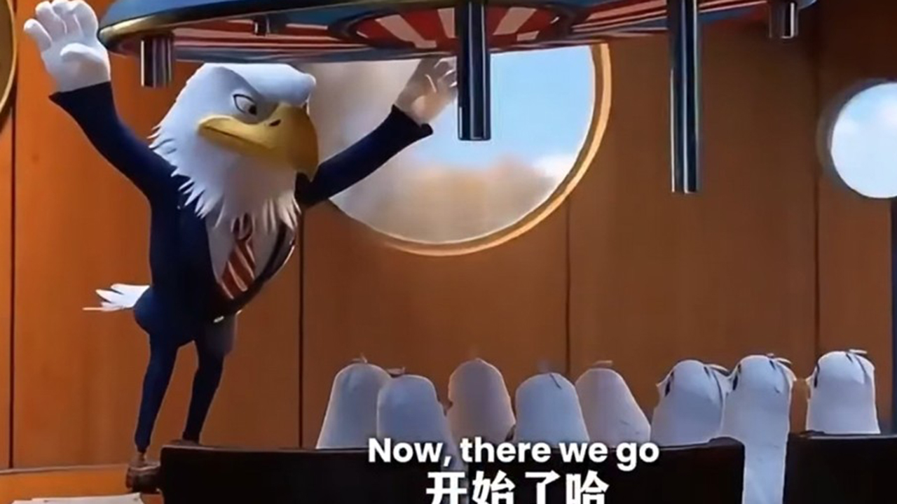 주미 중국대사관이 이날 페이스북·인스타그램 공식 계정에 올린 18초짜리 영상은 '미주의 방패' 로고가 걸린 선상 회의실에서 남색 양복을 입은 흰머리수리가 책상 위 빨간색 버튼을 누르는 장면으로 시작됩니다.