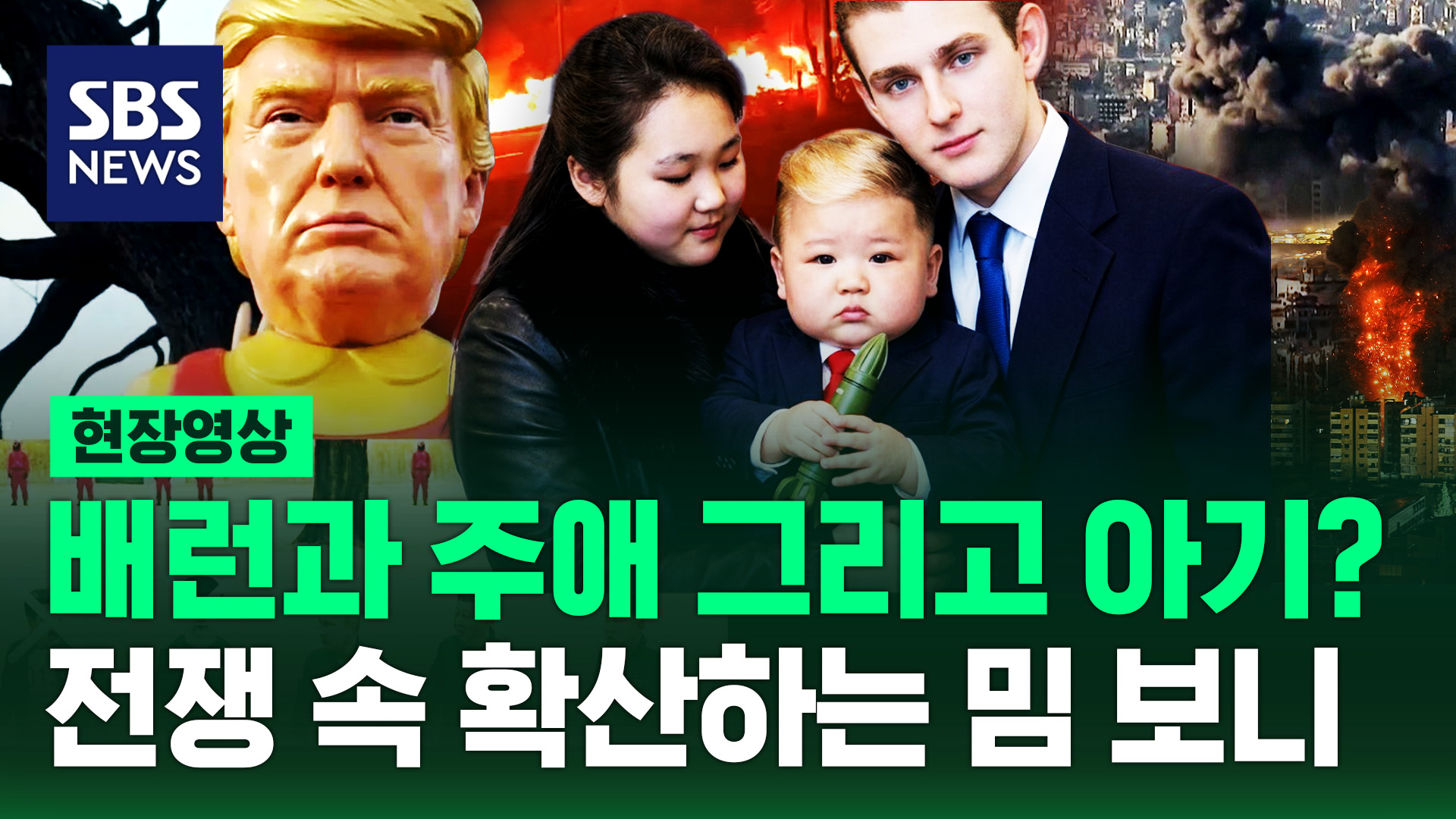 이 중의 하나는 트럼프 미국 대통령의 막내아들 배런과 김정은 북한 국무위원장의 딸 김주애가 결혼하는 밈인데, 이들을 결혼시키면 세계 평화가 온다는 설정의 합성 이미지가 확산하고 있습니다.