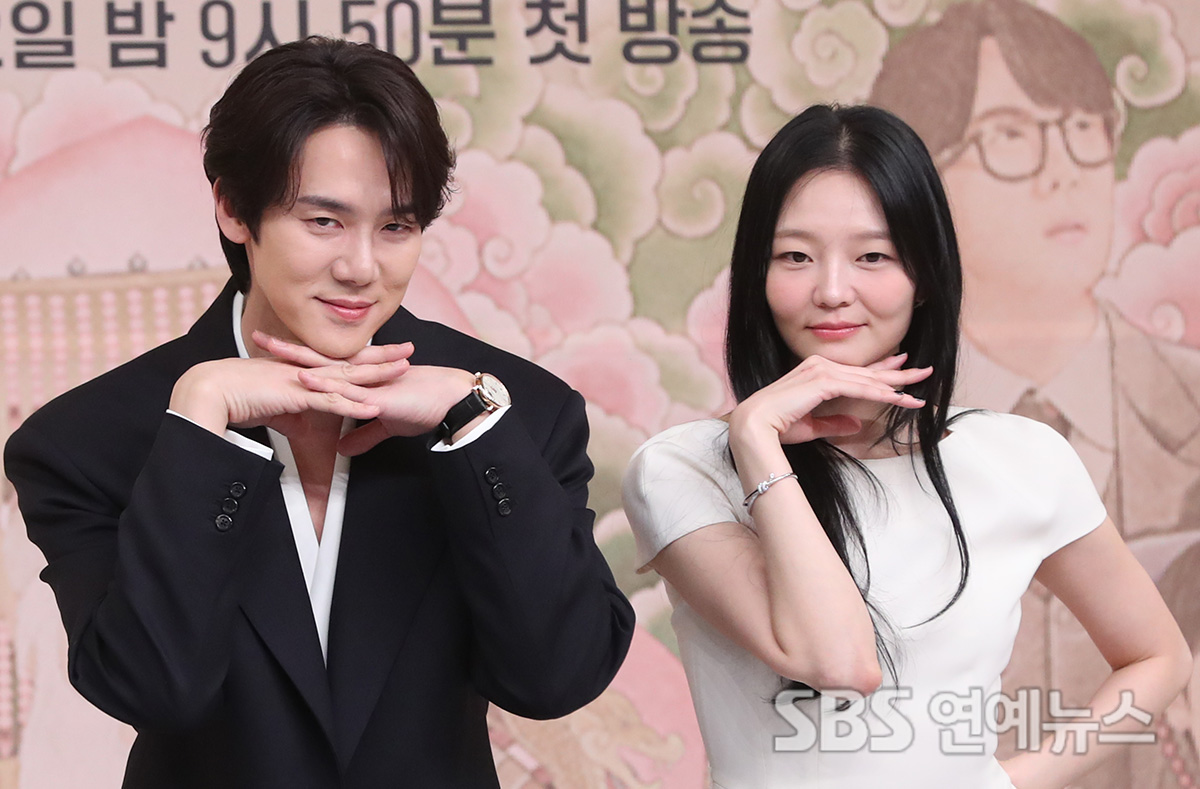 Yoo Yeonseok (left) and Esom posed for photos at the production presentation for the new Friday-Saturday drama 'Phantom Lawyer,' held at SBS in Mok-dong, Yangcheon-gu, Seoul, on the afternoon of March 11.