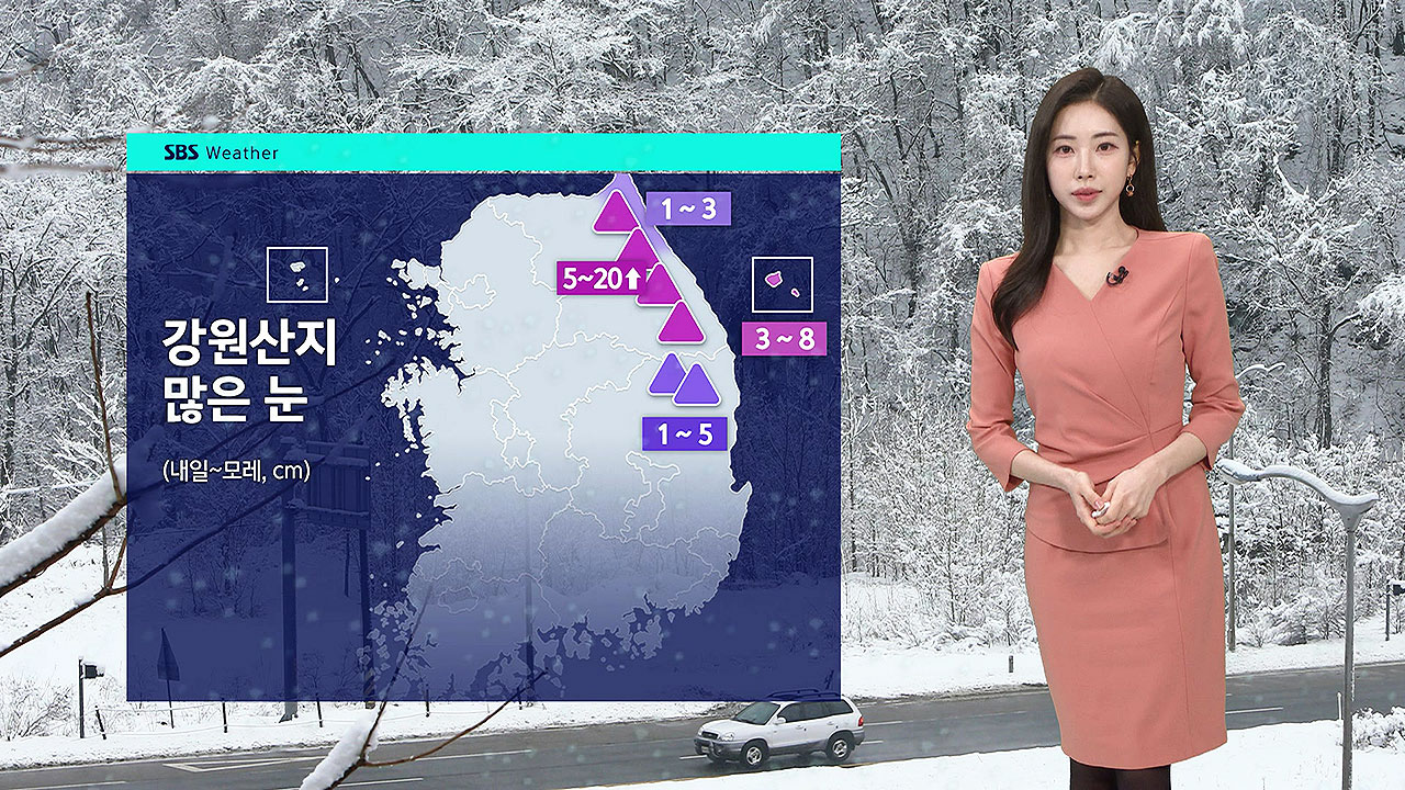 강원 산지에 최대 20cm 이상의 큰 눈이 내리겠고, 동해안은 5에서 20mm, 영남 내륙은 5mm 안팎의 비가 오겠습니다.