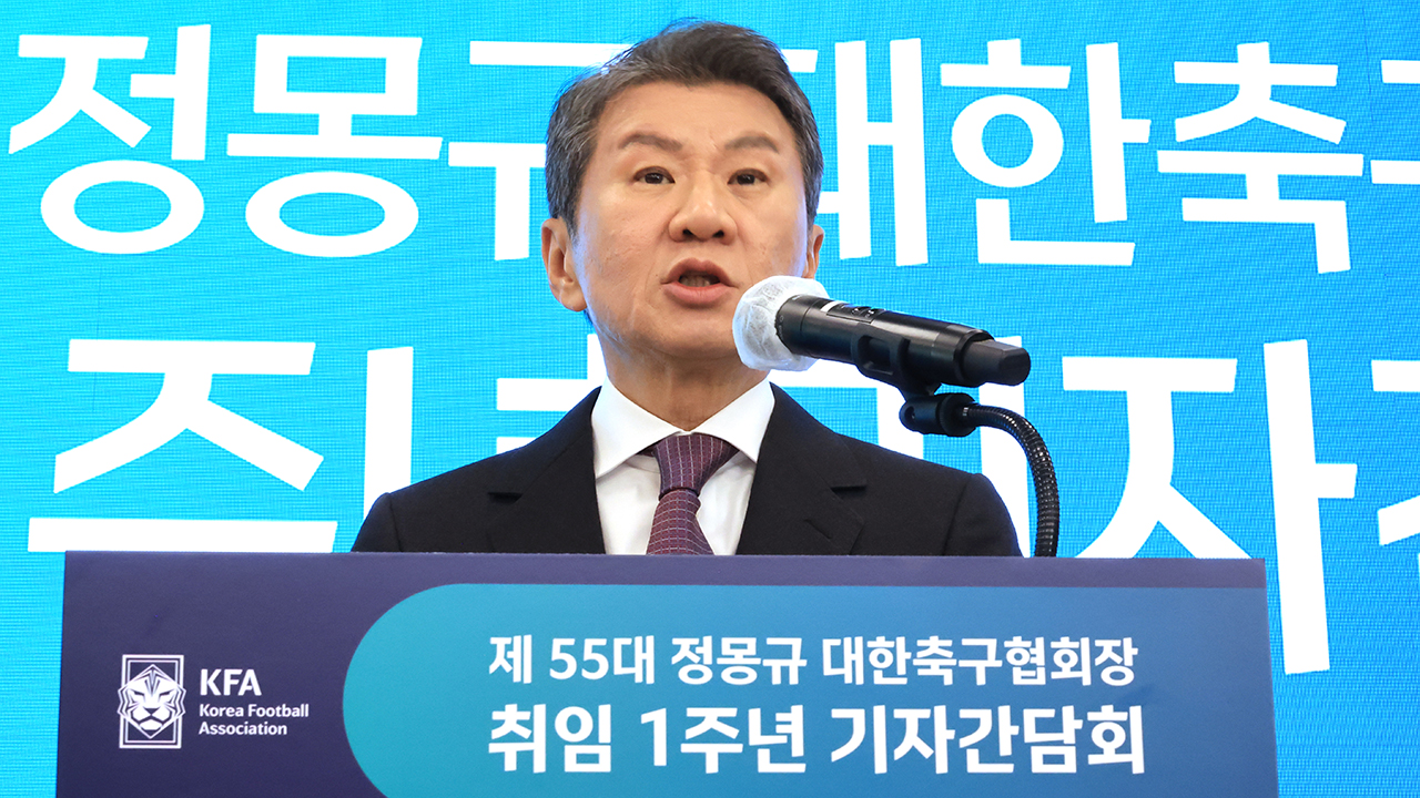 정 회장은 '비즈니스석 논란'에 휩싸였던 여자축구 대표팀에 대해서는 "경제적 논리로 남자 대표팀과 비교해 비난 여론이 형성된 건 회장으로서 안타깝다"며 "누구라도 대한민국 태극마크를 가슴에 단 선수는 좋은 환경에서 대접받을 자격이 있다"고 말했습니다.