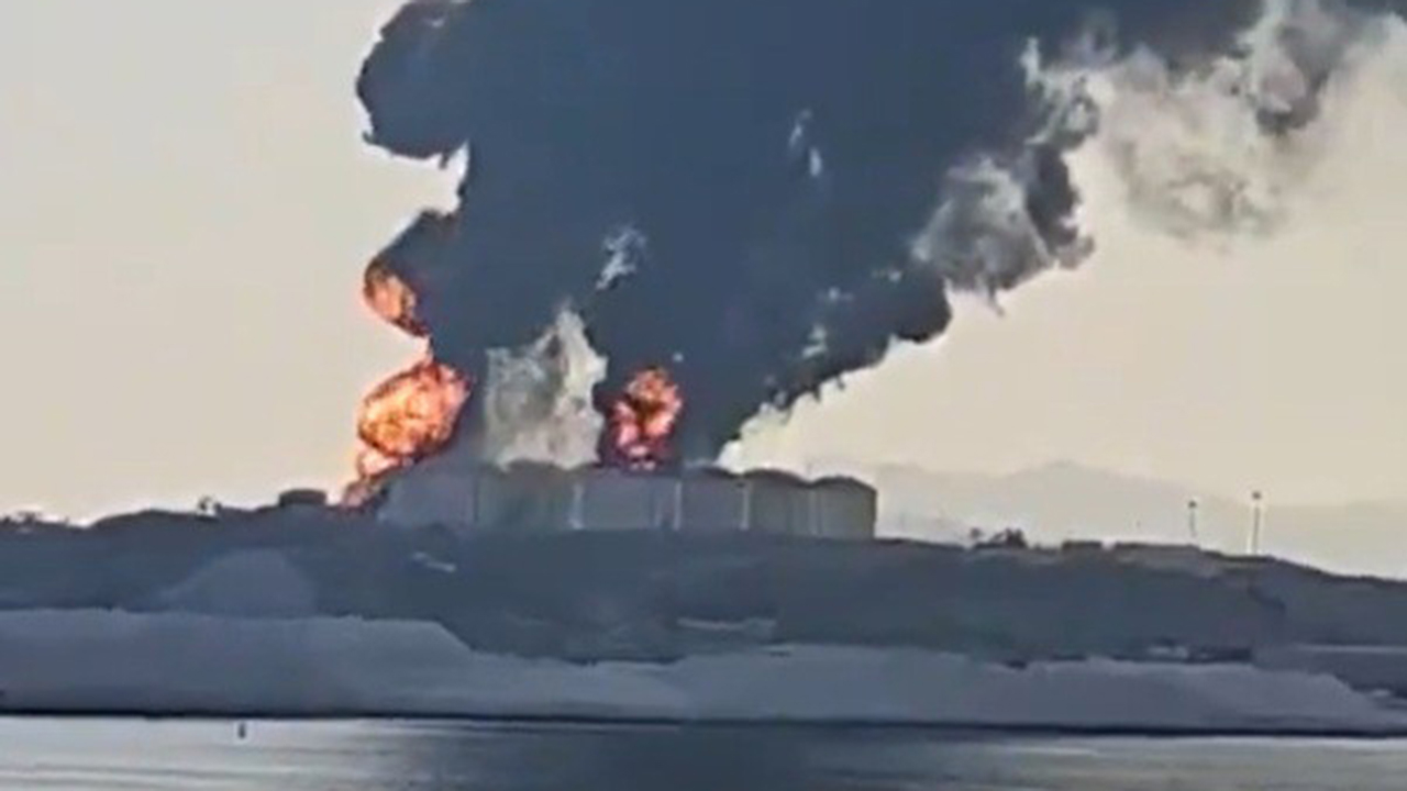 소셜미디어(SNS)에는 항구의 연료 저장 시설에서 화염과 불꽃이 치솟는 영상이 돌고 있습니다.