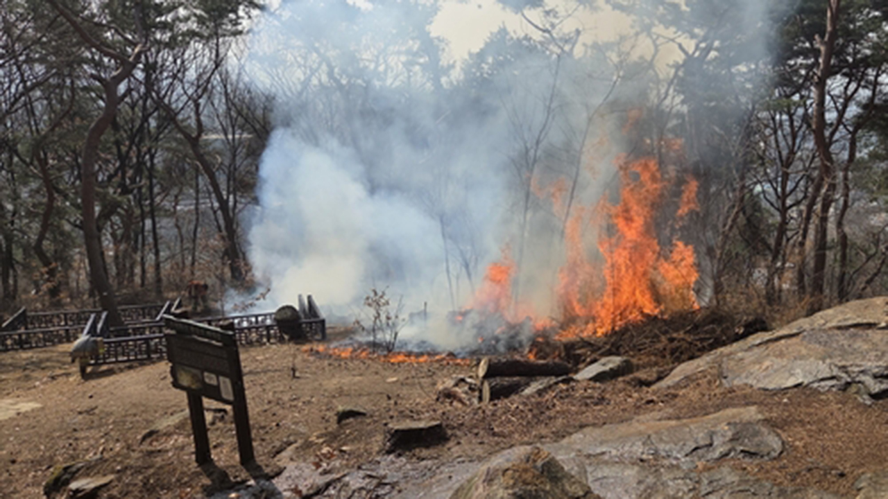 오늘(12일) 오전 11시 10분 경기도 수원시 팔달구 팔달산 일대 팔달공원에서 방화로 인한 화재가 발생했습니다.