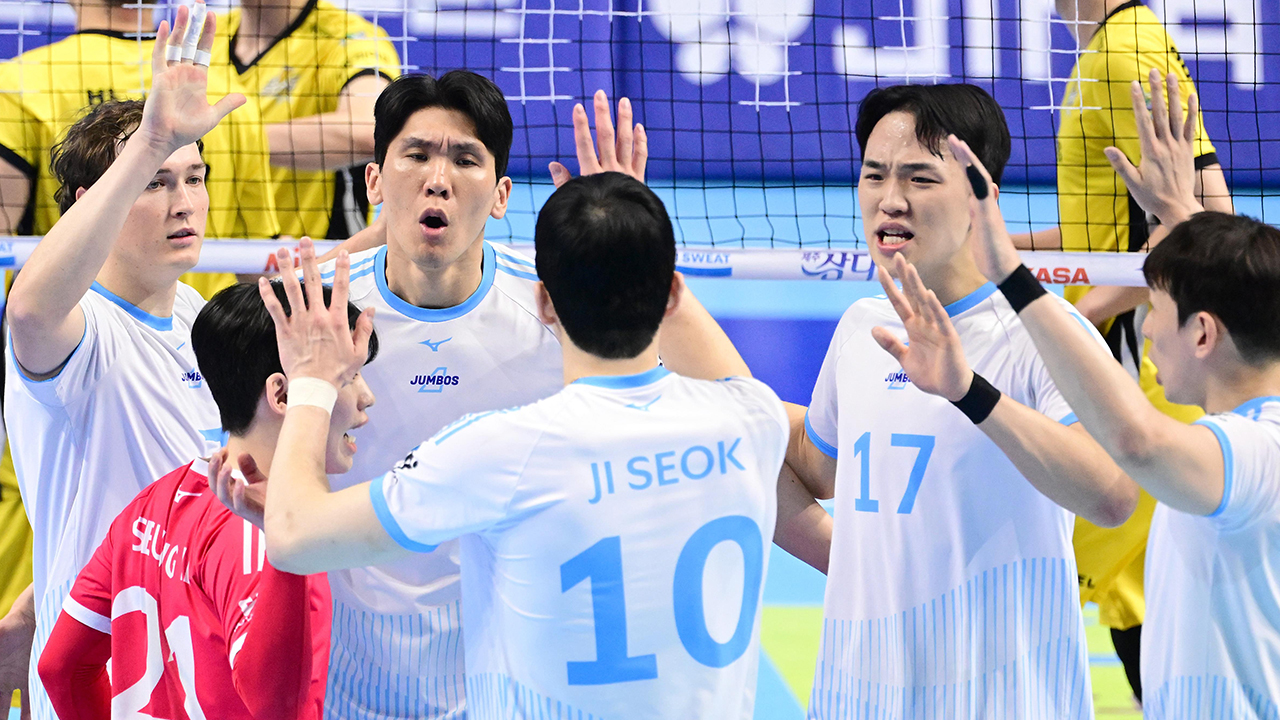 반면 4위 KB손보는 대한항공에 막히면서 승점 55(19승16패)에 머물러 동률인 3위 한국전력(승점 55)을 추월하는 데 실패했습니다.