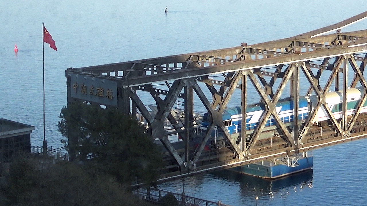 북한 승객을 태운 열차가 압록강대교를 넘어 중국 단둥으로 진입합니다.