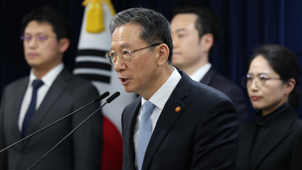 ▲ 정성호 법무부 장관이 14일 정부서울청사에서 쉰들러 국제투자분쟁 승소 관련 브리핑을 하고 있다.