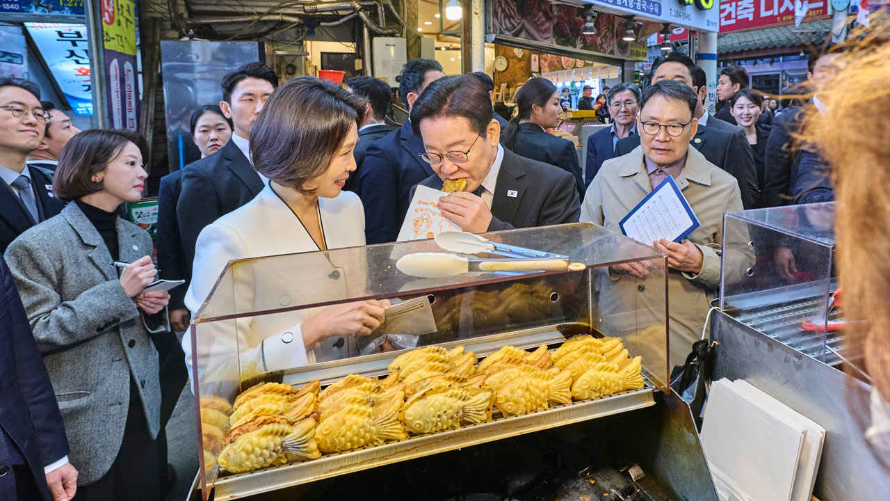 이 대통령 부부는 이후 시장 내 식당에서 김치찜과 계란말이로 상인들과 함께 점심을 먹었고 이 과정에서 상인회장에게 최근 매출 상황을 묻는 등 현장의 목소리를 들었습니다.