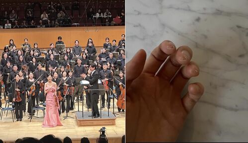 서현은 16일 자신의 소셜미디어를 통해 공연 준비 과정과 무대 비하인드를 담은 사진 여러 장을 게재했다. 특히 공개된 사진에는 오랜 연습으로 손가락에 깊게 파인 굳은살이 담겨 눈길을 끌었다.