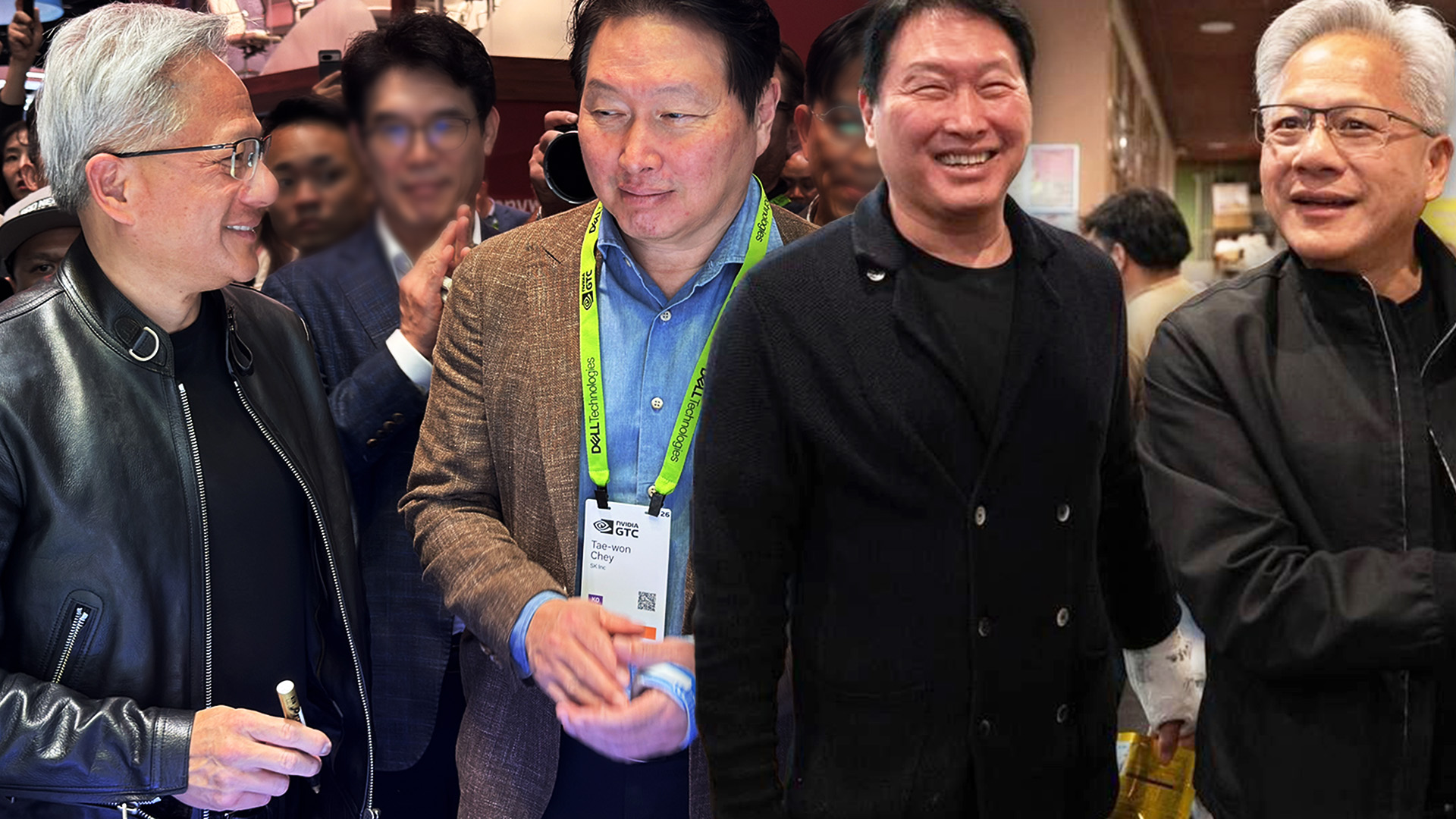 젠슨 황 엔비디아 최고경영자와 최태원 SK그룹 회장이 현지시간 16일 미국 캘리포니아주 새너제이 컨벤션센터에서 열린 엔비디아 연례 개발자회의 'GTC 2026'에서 또 한 번 만났습니다. 지난 2월 실리콘밸리에서 치킨과 맥주를 먹으며 이른바 '치맥 회동'을 한 데 이어 한 달여 만입니다. 두 사람은 전시장 내 SK하이닉스 전시 부스를 함께 찾았습니다. 이 자리에서 젠슨 황 CEO는 두 회사간 대표 협력 전시 제품인 베라 루빈에 "JENSEN ♡ SK HYNIX" 사인을 남기기도 했습니다. 자세한 내용은 영상으로 전하겠습니다.