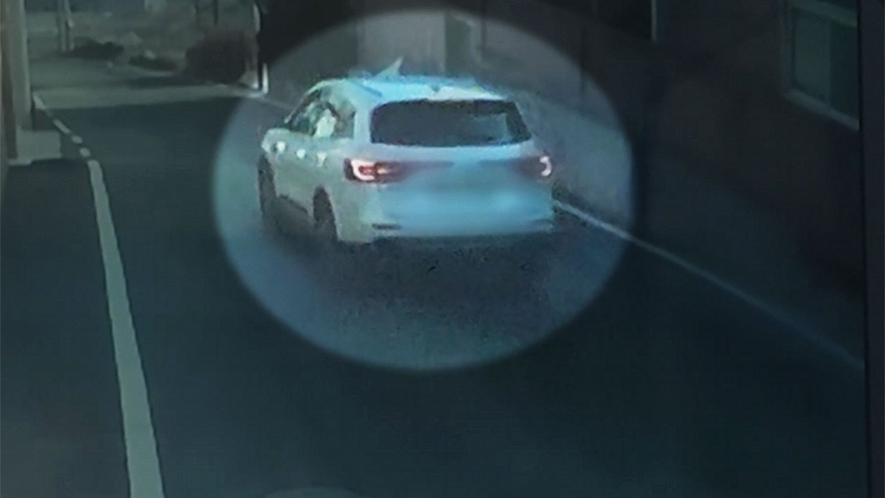 흰색 SUV 차량이 골목길을 빠져나갑니다.