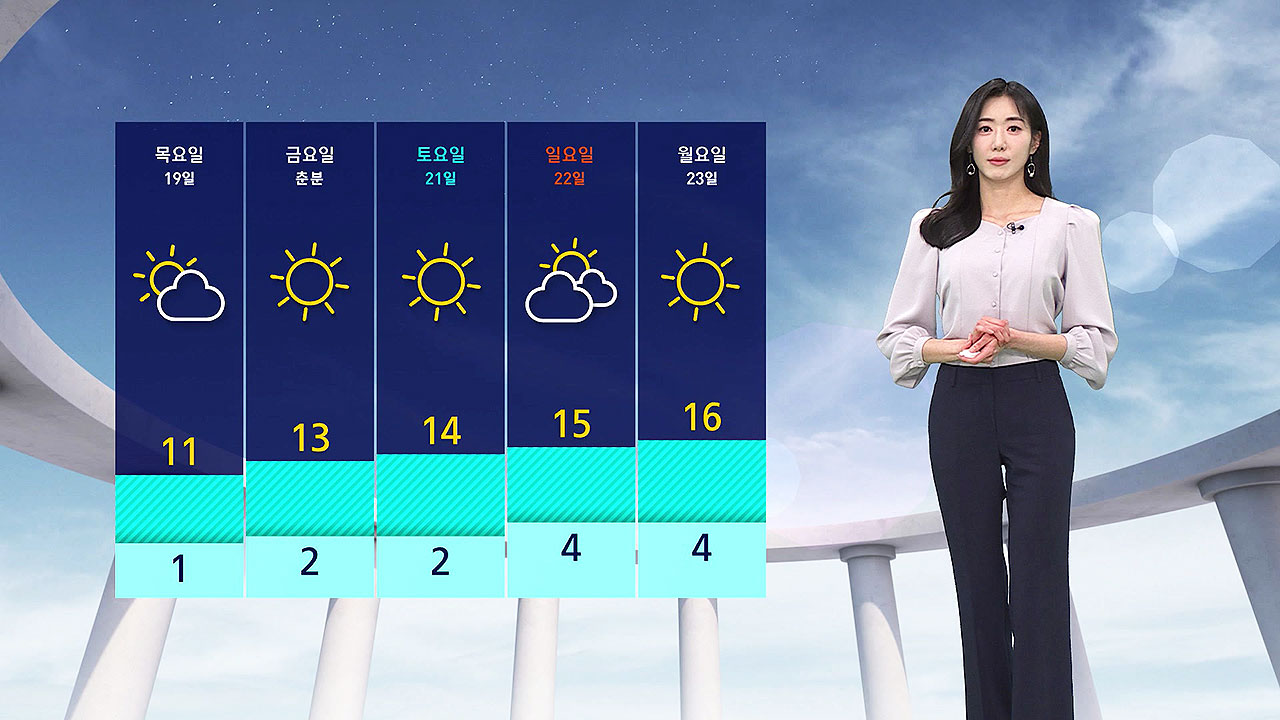 비가 그치고 당분간은 대체로 맑은 날씨가 이어지겠고 일교차 큰 초봄 날씨 예상됩니다.