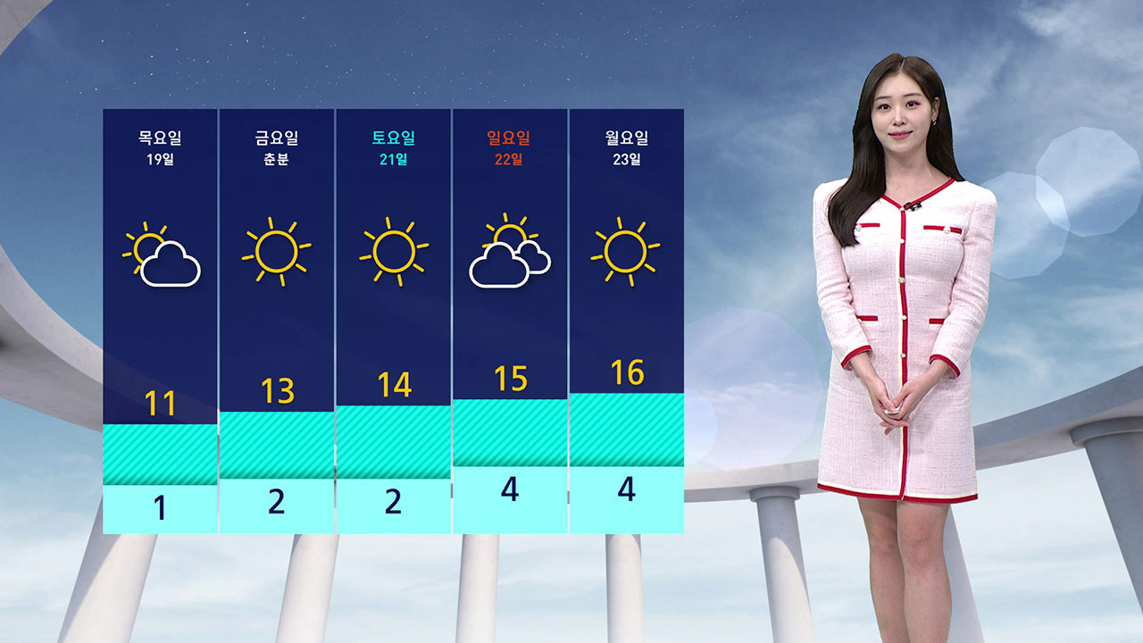 내일 낮부터는 다시 기온이 오름세로 돌아서겠습니다.