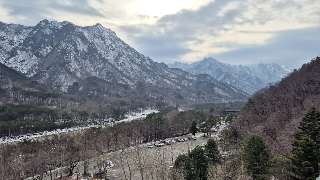 ▲ 14일 강원 속초시 설악동 설악산국립공원 소공원 주차장이 눈 쌓인 설악산을 보기 위한 시민과 관광객들의 차로 붐비고 있다.