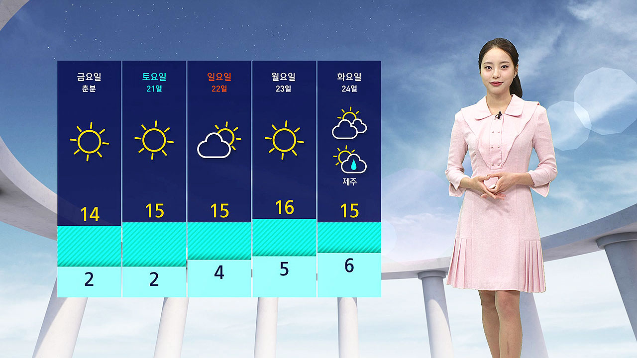 낮 동안에는 기온이 두 자릿수를 보이며 일교차가 15도 안팎으로 크게 벌어지겠습니다.