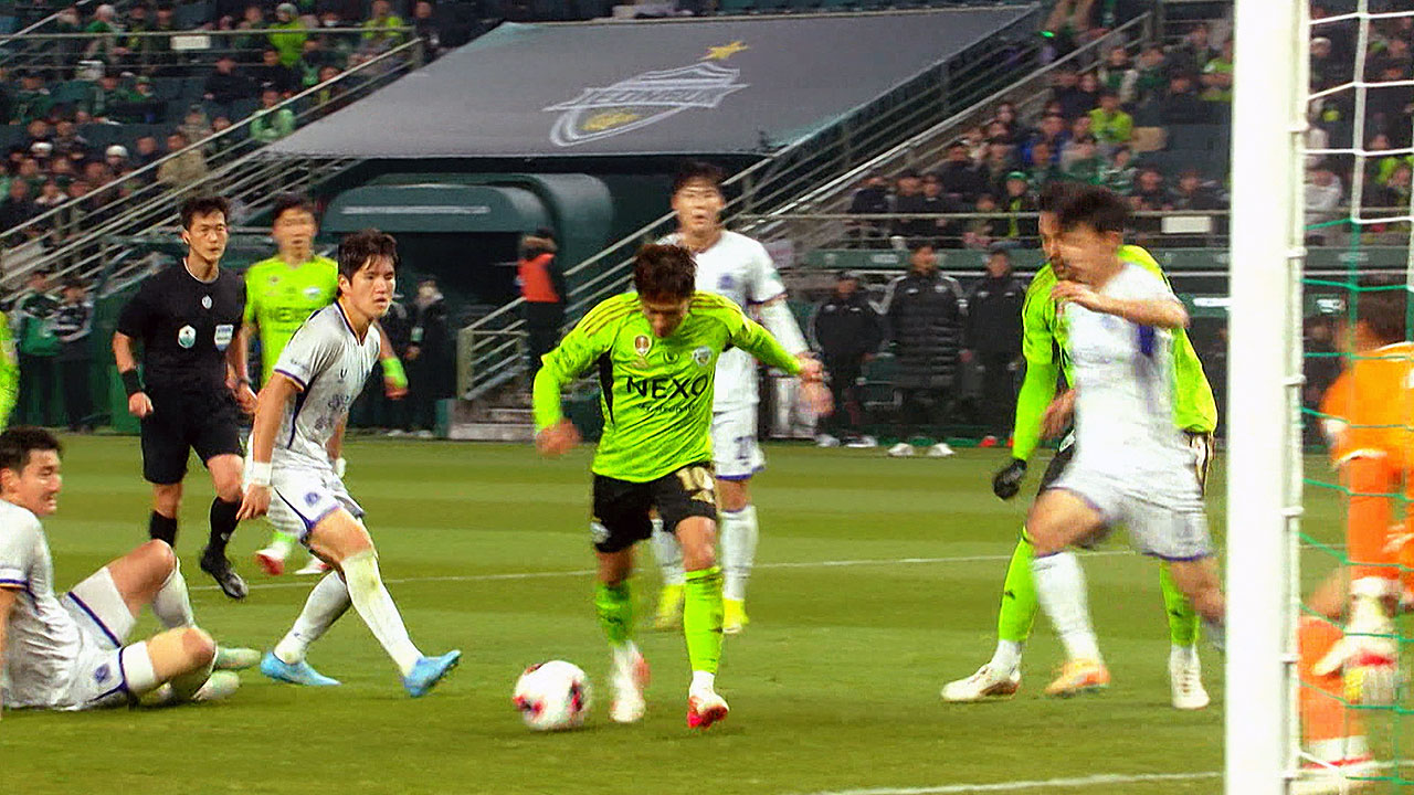 안방에서 안양과 1:1로 맞선 후반 41분 전북 이승우가 번뜩였습니다.