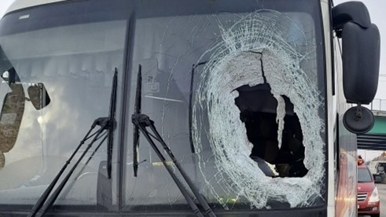 오늘(19일) 경기 평택경찰서에 따르면 지난 18일 오후 3시 54분 평택시 서해안고속도로 금천 방향 포승분기점 부근에서 70대 A 씨가 몰던 4.5t 화물차에서 바퀴가 이탈해 반대 차로인 무안 방향의 시외버스(고양~군산)의 운전석 쪽 앞 유리로 날아드는 사고가 났습니다.