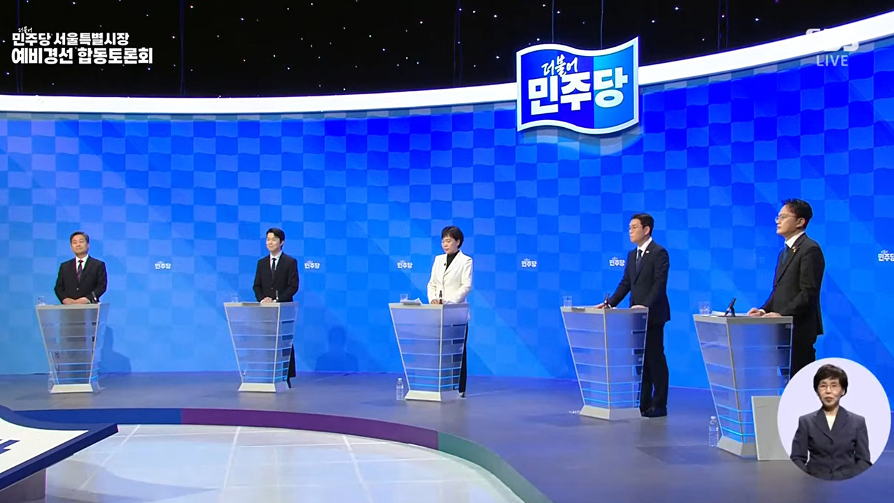 민주당 박주민·정원오·전현희·김형남·김영배 후보(기호순)는 이날 서울 상암동 SBS 프리즘타워 스튜디오에서 열린 토론회에서 맞붙었습니다.